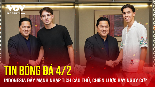 VOVVN - VOV.VN - Tin bóng đá hôm nay 4/2 có những nội dung đáng chú ý sau đây: Indonesia đẩy mạnh nhập tịch cầu thủ, chiến lược hay nguy cơ?; AFC xác nhận thời điểm tổ...