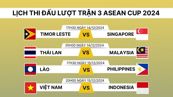 Lịch thi đấu lượt trận 3 ASEAN Cup 2024: ĐT Việt Nam đại chiến ĐT Indonesia