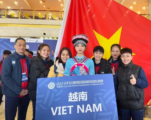 VOVVN - VOV.VN - The Vietnamese sepak takraw team have brought home a gold medal in the women’s quadrant at the ongoing ASEAN Cup International Sepak takraw Invitational 2023 which was held in China.