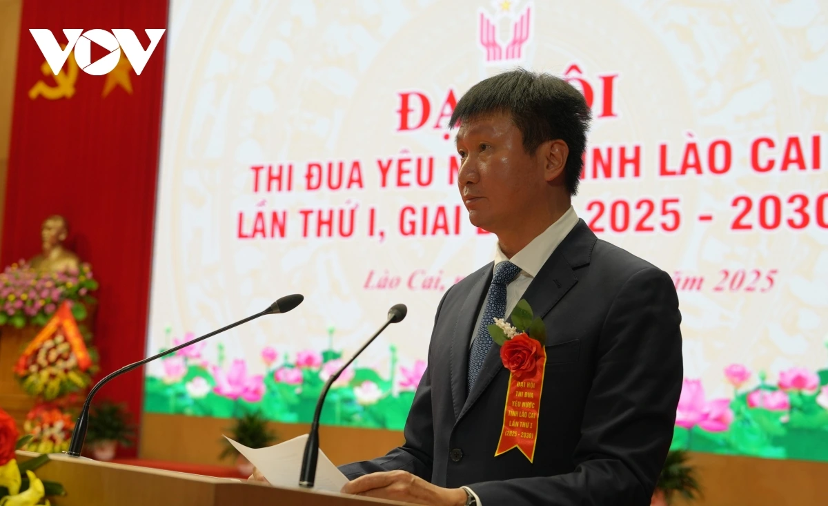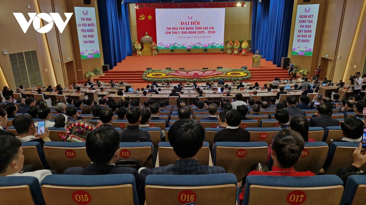 VOV.VN - Chiều nay (17/10), tỉnh Lào Cai tổ chức Đại hội Thi đua yêu nước lần thứ I, giai đoạn 2025–2030, với chủ đề: “Thi đua đổi mới, sáng tạo, tăng tốc, bứt phá xây dựng tỉnh Lào Cai trở thành cực tăng trưởng, trung tâm kết nối giao thương kinh tế quốc tế, phát triển theo hướng xanh, hài hòa, bản sắc, hạnh phúc”.