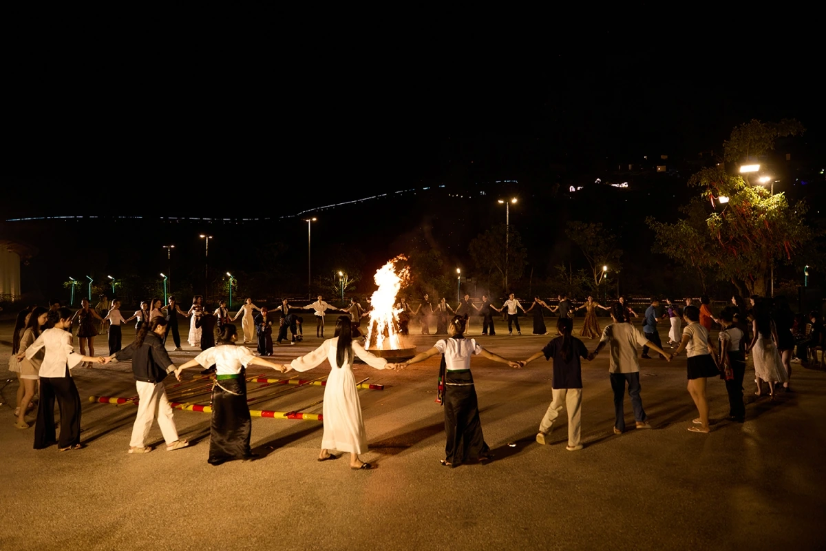 Kết thúc một ngày hoạt động, các người đẹp cùng người dân địa phương hòa mình trong đêm lửa trại, tay trong tay múa xòe giữa âm vang núi rừng Mộc Châu. Tiếng khèn, tiếng trống hòa cùng tiếng cười, ánh lửa rực sáng soi lên những tà váy xòe rực rỡ – nơi văn hóa và nhan sắc cùng tỏa sáng.