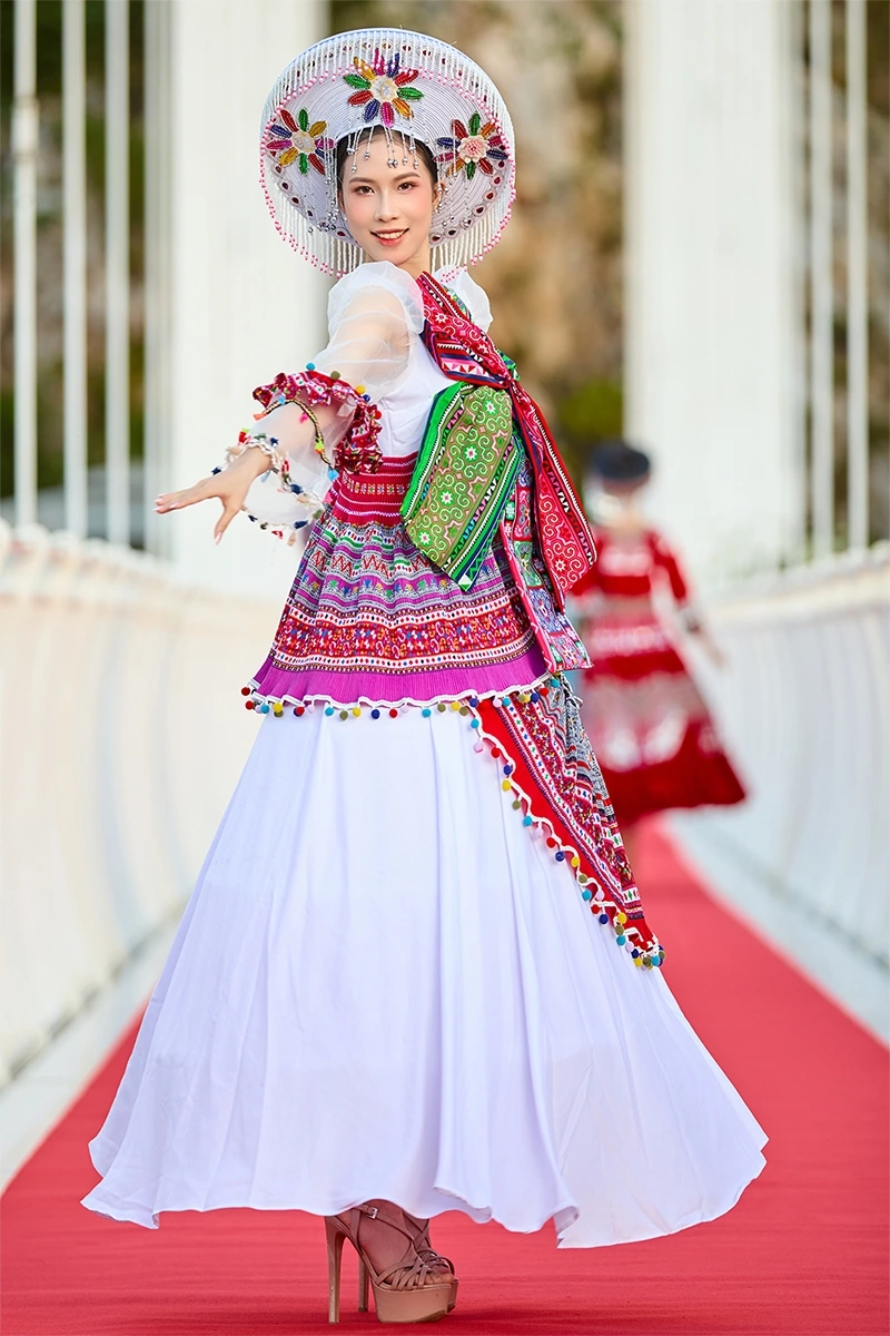 Trên cầu kính Bạch Long - cây cầu kính dài nhất thế giới, giữa đại ngàn xanh mướt, trong không gian khoáng đạt của núi rừng, các thí sinh Vòng Chung khảo tài năng Hoa hậu Du lịch Dân tộc Việt Nam 2025 lần lượt trải qua ba phần trình diễn: bikini, thời trang dạ hội và trang phục lấy cảm hứng từ vẻ đẹp văn hóa dân tộc.