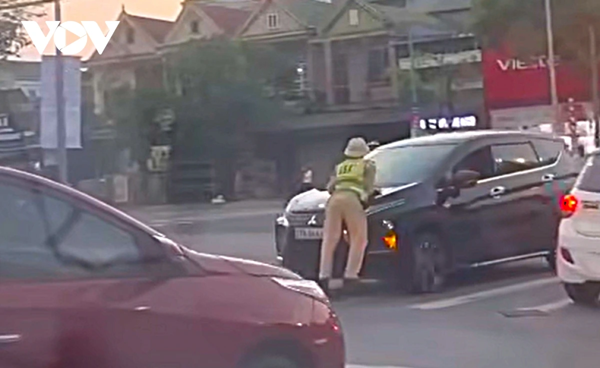 VOV.VN - Đang điều khiển, hướng dẫn người và phương tiện đi đường tránh ùn tắc giao thông, một cán bộ Tổ địa bàn thành phố Vinh cũ, thuộc Đội cảnh sát giao thông (CSGT) số 4, Phòng CSGT Công an tỉnh Nghệ An đã bị một đối tượng điều khiến ô tô đâm trực diện, hất lên nắp capo.