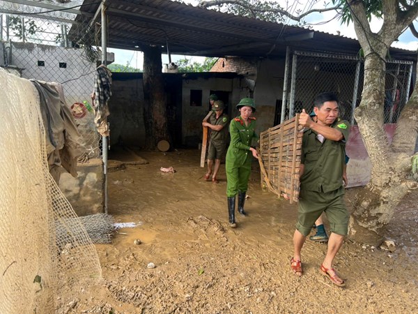 VOVVN - VOV.VN - Lực lượng Công an tỉnh Bắc Ninh và các địa phương căng mình tiếp tục chung sức với dân dọn vệ sinh môi trường, khắc phục hậu quả sau lũ lụt, dần ổn...