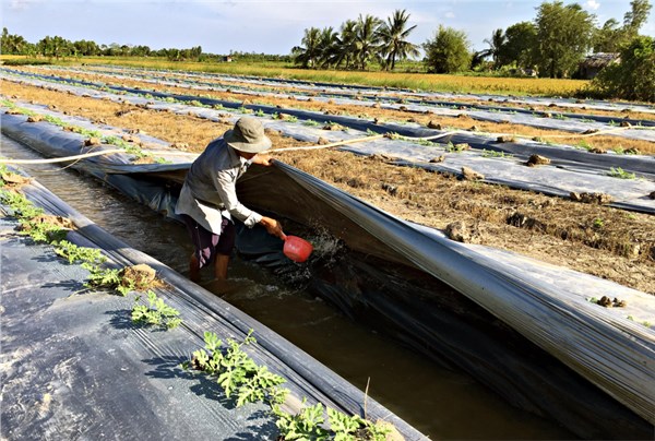 VOV1 - Nắm bắt nhu cầu tiêu thụ dưa hấu tăng cao dịp Tết, nhiều nông hộ ở Cà Mau đã trồng dưa phục vụ thị trường. Đối với vùng ngọt hóa, việc trồng dưa không khó...