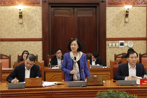 VOV1 - Chiều nay, tại Trụ sở Trung ương Đảng, chủ trì giao ban với Ban cán sự đảng Chính phủ, ban cán sự đảng các bộ, ngành Trung ương, đồng chí Trương Thị Mai, Ủy viên...