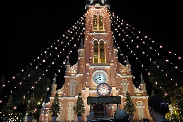 Càng gần đến lễ Giáng sinh, buổi tối là thời điểm nhiều người dân ở TP.HCM đổ về khu vực trung tâm, nhà thờ nơi có trang trí bắt mắt để chụp hình, dạo chơi.