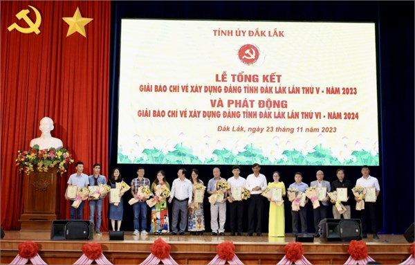 VOV1 - Sáng nay, 23/11, Ban Thường vụ Tỉnh ủy Đắk Lắk đã tổ chức Lễ tổng kết Giải Báo chí về xây dựng Đảng tỉnh Đắk Lắk lần thứ V – năm 2023 và Phát động...