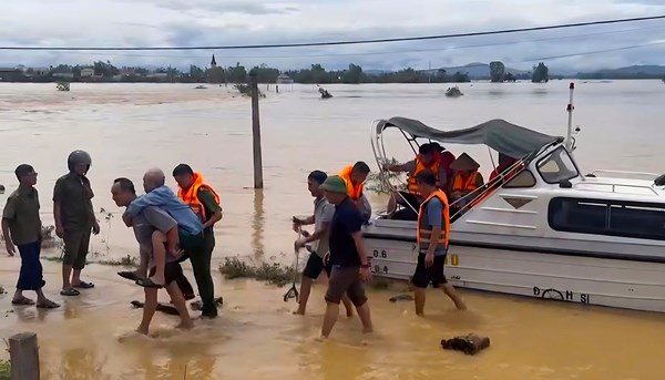 VOVVN - VOV.VN - Nhà bị cô lập do nước dâng cao sau bão, một cụ ông ở xã xã Hưng Nguyên Nam, tỉnh Nghệ An bị tai biến, may mắn đã được hỗ trợ đưa vào...