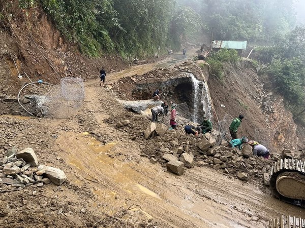 VOVVN - VOV.VN - Ngành chức năng tỉnh Lào Cai đã có hướng dẫn người dân di chuyển qua đèo Khau Phạ, khu vực vừa khắc phục tạm thời sau sạt lở lớn, km 269+750, Quốc lộ...