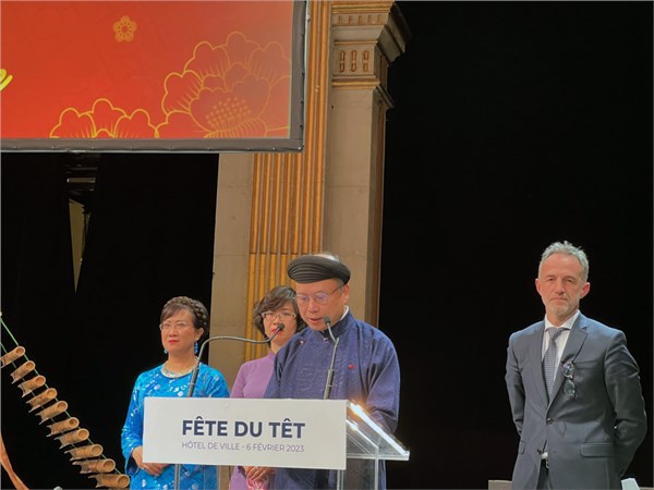 VOV1 - Sau 3 năm gián đoạn vì đại dịch Covid-19, Tết Việt Quý Mão 2023 đã tưng bừng trở lại tại Toà Thị chính thủ đô Paris trong một sự kiện văn hoá đặc sắc tổ...