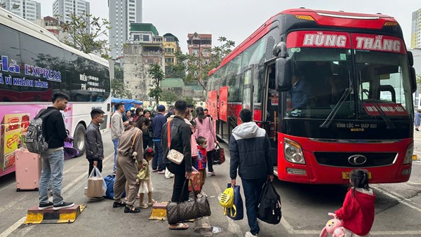 VOVVN - VOV.VN - Ngày mùng 2 và mùng 3 Tết Nguyên đán (18/2), Bến xe Giáp Bát (Hoàng Mai, Hà Nội) đã nhộn nhịp trở lại. Người tranh thủ về quê sum họp muộn, người từ...