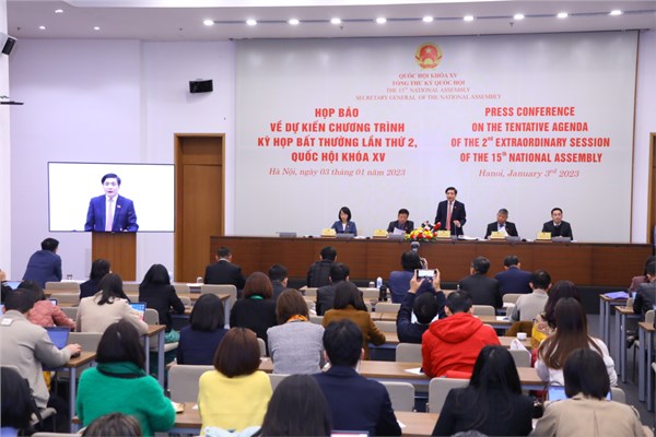 VOV1 - Chiều nay, tại Hà Nội, Văn phòng Quốc hội tổ chức họp báo, thông tin về Kỳ họp bất thường lần thứ 2, Quốc hội khóa 15. Theo đó, Kỳ họp bất thường lần thứ...