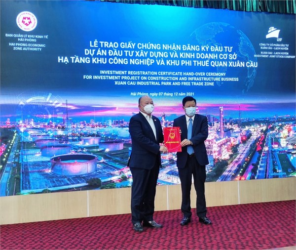 VOV1 - Ban quản lý Khu kinh tế Hải Phòng vừa tổ chức lễ trao giấy chứng nhận đăng ký đầu tư Dự án Khu Khu phi thuế quan quan - Logistics và Công nghiệp Xuân Cầu...