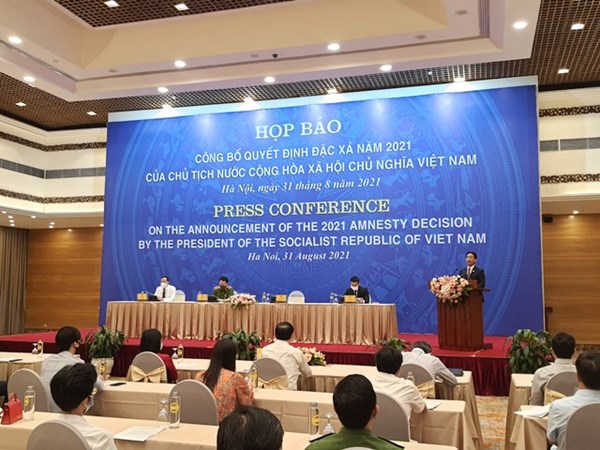 VOV1 - Sáng nay 31/8, tại Hà Nội, Văn phòng Chủ tịch nước tổ chức họp báo công bố Quyết định đặc xá năm 2021 của Chủ tịch nước cho những phạm nhân đang chấp hành án...