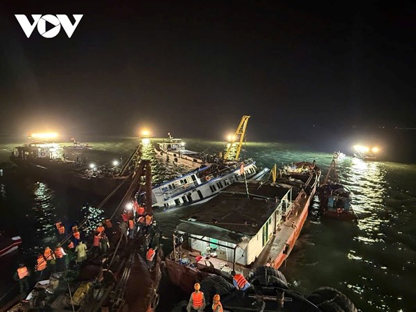 VOVVN - VOV.VN - Rạng sáng 20/7, lực lượng chức năng tỉnh Quảng Ninh đã lật lại tàu Vịnh Xanh 58 và kéo vào bờ. Bước đầu xác định có 3 nạn nhân quê ở tỉnh Bắc...