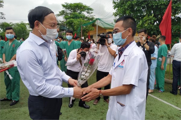 VOV1 - 200 bác sỹ và cán bộ y tế của bệnh viện Việt Nam - Thụy Điển Uông Bí, Quảng Ninh lên đường chi viện tỉnh Bắc Giang ngăn chặn dịch bệnh Covid-19.
