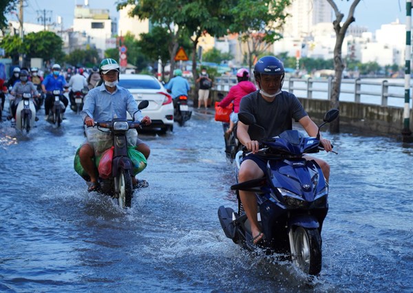 VOVVN - VOV.VN - Những ngày qua, mưa lớn kéo dài kết hợp với triều cường khiến một số tuyến đường trên địa bàn TP.HCM lênh láng nước. Nước dâng cao khiến cuộc sống, sinh hoạt của...