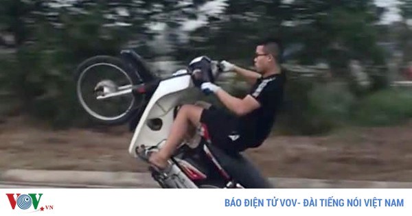 VOVVN - VOV.VN - Nam thanh niên thừa nhận đã điều khiển xe máy không đội mũ bảo hiểm và đi bằng một bánh tại đường liên xã An Khánh, Lại Yên, Hoài Đức