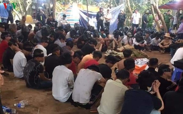 VOVVN - VOV.VN - Lực lượng công an Tiền Giang đột nhập vào phần đất trống tại ấp 5, xã Thạnh Tân, huyện Tân Phước và phát hiện các đối tượng đang tham gia đánh bạc.