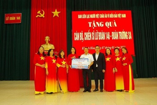 Bà con kiều bào tặng quà cho các chiến sĩ huyện đảo Trường Sa nhân dịp Xuân Quý Mão