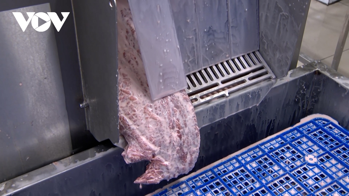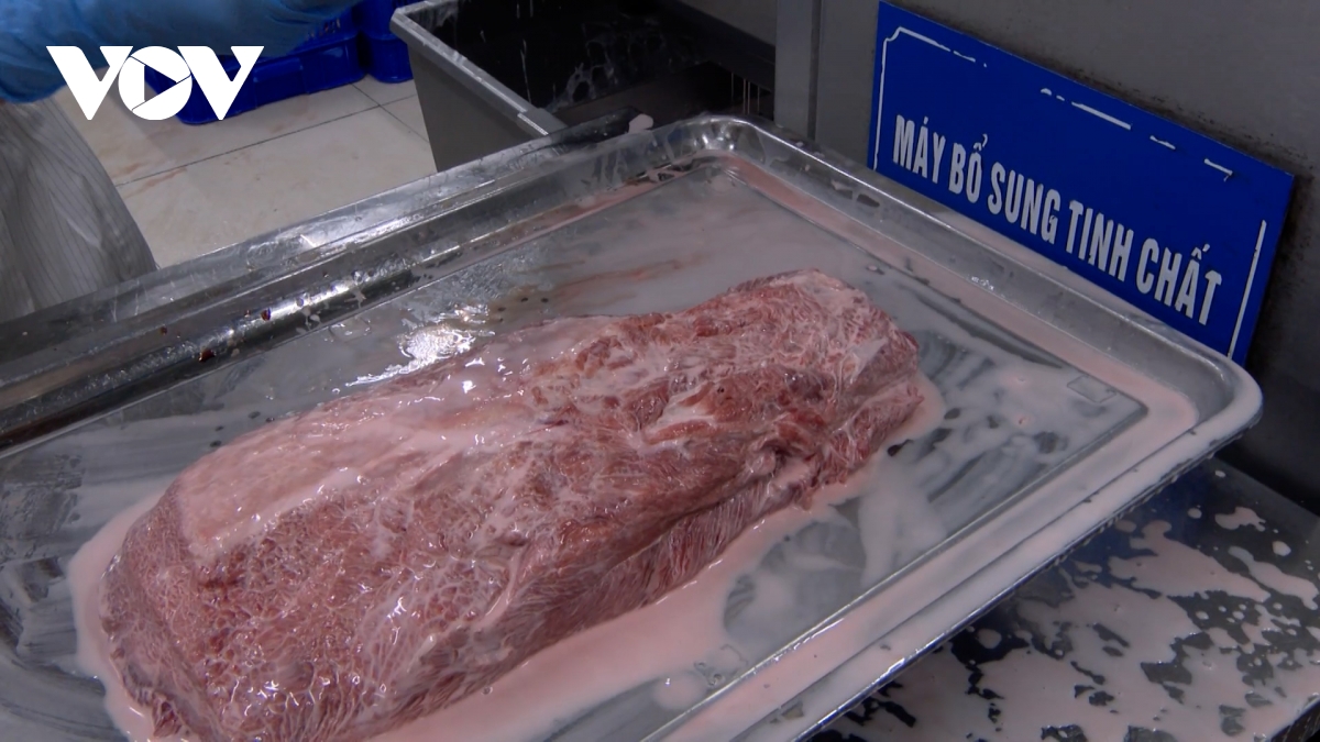 Chỉ sau vài phút, màu sắc của thịt chuyển từ nhợt nhạt, thâm tái sang đỏ tươi, có vân mỡ giống hệt thịt bò nhập khẩu. Từng khối thịt được đóng gói, dán nhãn “thịt bò nhập khẩu”, “bò Hokubeef”, “bò Wagyu”, kèm hạn sử dụng lên đến một năm, dù thời điểm giết mổ thật đã cách đó hàng năm trời.