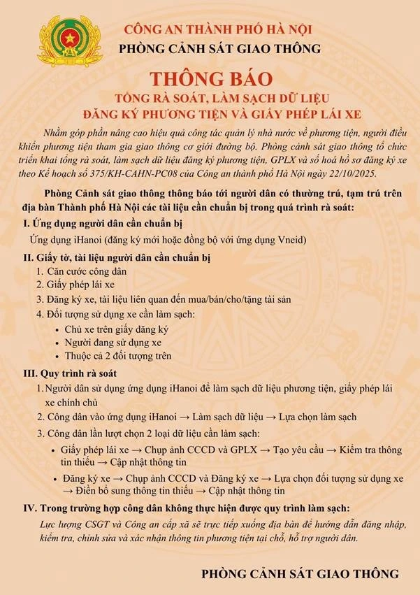 Kế hoạch cao điểm được triển khai theo hai giai đoạn: Giai đoạn 1, đẩy mạnh tuyên truyền, vận động người dân tự kê khai thông tin phương tiện, chủ phương tiện trên ứng dụng iHanoi; Công an cấp xã tiến hành rà soát, hướng dẫn các trường hợp chưa khai báo.