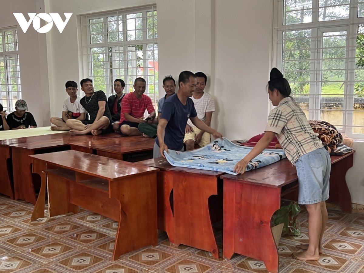 “Từ chiều hôm qua, nhận được tin cơn bão số 1 về, anh em về đây tránh bão thấy an toàn, yên tâm hơn ở lán. Đêm qua ngủ ngon giấc hơn”.