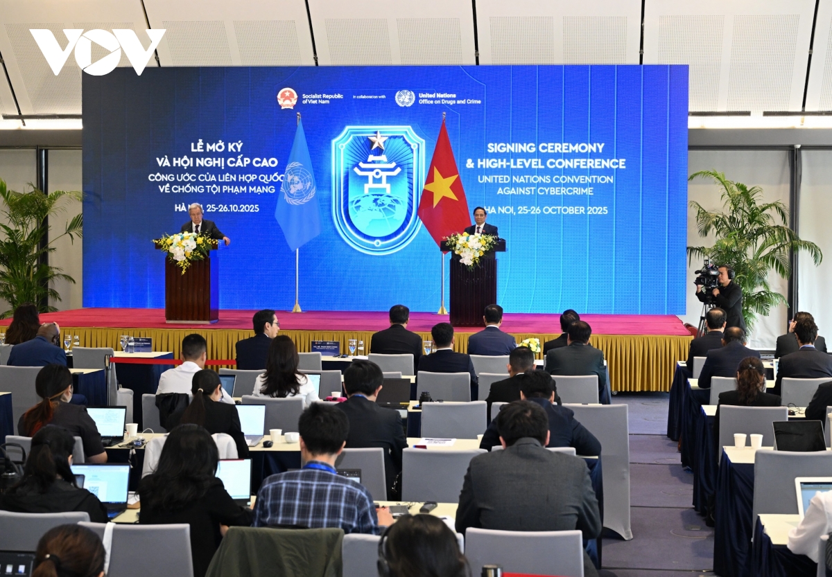 VOV.VN - Trong khuôn khổ Lễ mở ký Công ước của Liên Hợp Quốc về chống tội phạm mạng (Công ước Hà Nội), vào trưa nay (25/10), Thủ tướng Chính phủ Phạm Minh Chính và Tổng Thư ký Liên Hợp Quốc António Guterres đồng chủ trì buổi gặp gỡ báo chí.