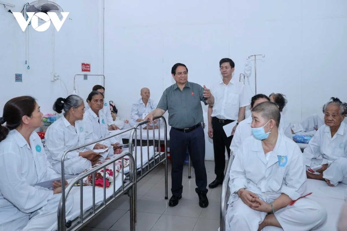 Thủ tướng cũng đã tới thăm Bệnh viện Ung bướu Cần Thơ (cơ sở cũ), kiểm tra hiện trạng cơ sở vật chất và thăm hỏi, động viên đội ngũ y bác sĩ, các bệnh nhân và người nhà tại đây. Thủ tướng yêu cầu: “Vào Bệnh viện ung bướu Cần Thơ tôi cảm thấy rất băn khoăn trăn trở 2-3 người bệnh trên một giường, trong một khu rất chật chội, rất là trăn trở, day dứt, thiết bị thì khó khăn. Tôi đề nghị Cần Thơ là chủ dự án, đề xuất ngay mua ngay mấy máy xạ trị để chữa bệnh cho bà con, việc này khẩn cấp. Thứ hai khẩn trương khởi động lại Bệnh viện Ung bướu Cần Thơ để cho khu vực Đồng bằng sông Cửu Long có một trung tâm chữa bệnh ung bướu”.