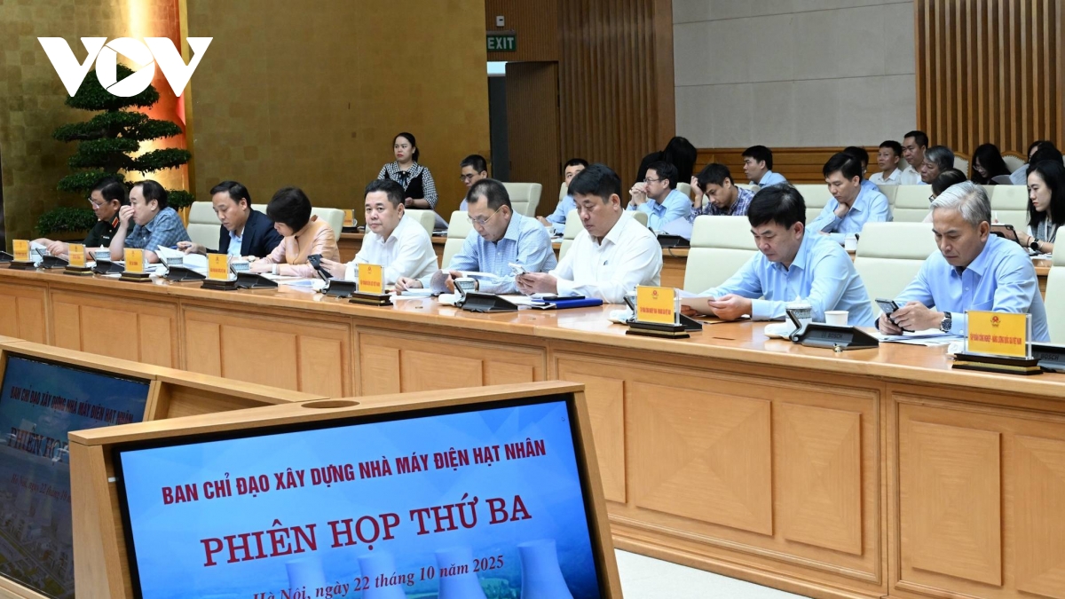 VOV.VN - Chiều nay (22/10), tại Trụ sở Chính phủ, Thủ tướng Chính phủ Phạm Minh Chính, Trưởng Ban Chỉ đạo xây dựng nhà máy điện hạt nhân chủ trì phiên họp lần thứ 3.