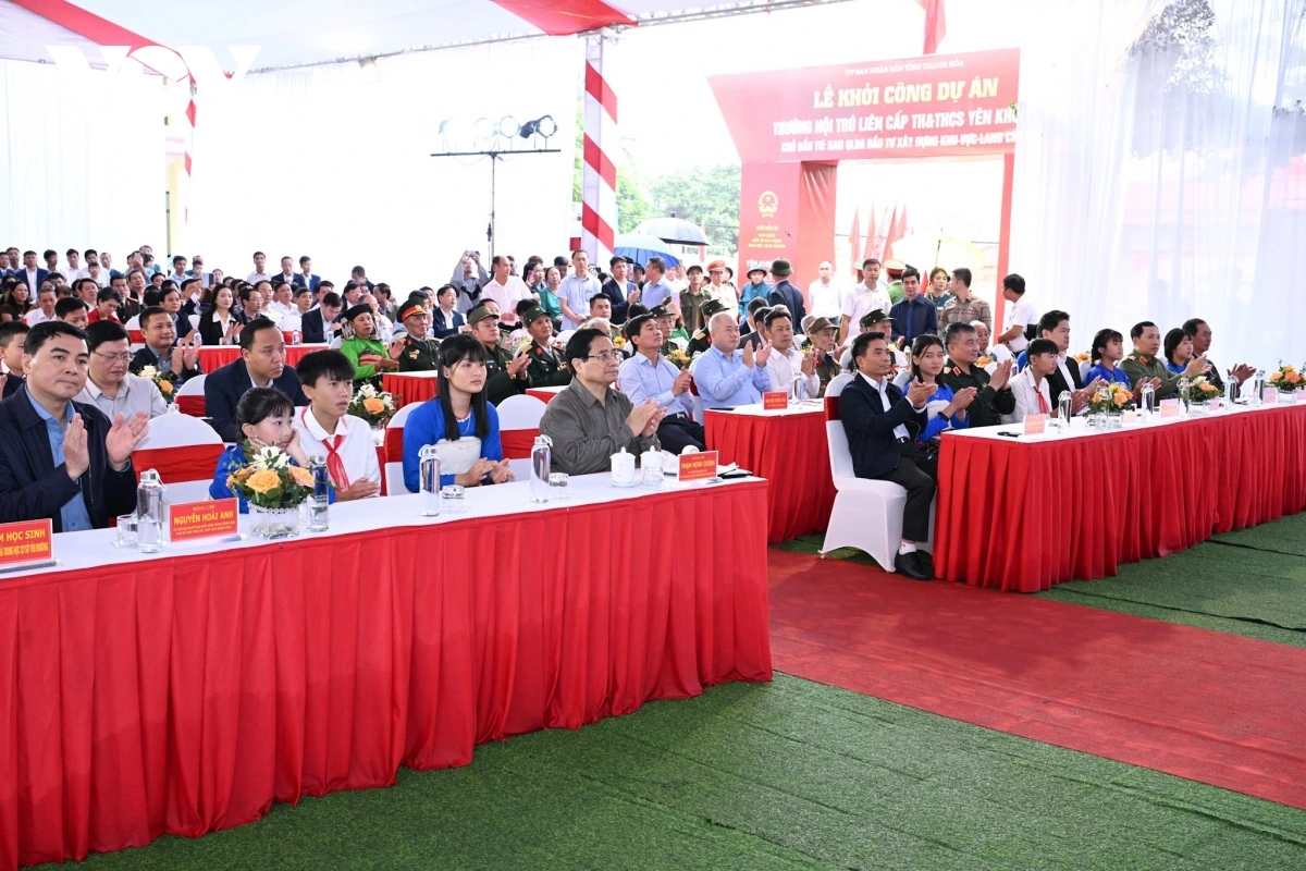 Nhấn mạnh Đảng, Nhà nước ta luôn coi giáo dục và đào tạo là quốc sách hàng đầu, với vai trò đặc biệt quan trọng, tạo nền tảng hình thành và phát triển nhân cách, phẩm chất, năng lực của con người, là yếu tố quyết định bảo đảm sự thành công, Thủ tướng cho biết Bộ Chính trị đã thống nhất và tập trung lãnh đạo chỉ đạo chủ trương đầu tư xây dựng các trường phổ thông nội trú liên cấp tiểu học và trung học cơ sở tại 248 xã biên giới đất liền. Đây là một chủ trương lớn, có ý nghĩa chiến lược, không chỉ nhằm xây dựng những ngôi trường khang trang, hiện đại, mà còn hướng đến mục tiêu cao cả hơn - xây dựng "pháo đài tri thức" nơi biên cương của Tổ quốc - để mỗi người dân vùng biên cương thân yêu đều được học hành, được tiếp cận các dịch vụ xã hội cơ bản và tạo mọi điều kiện thuận lợi thúc đẩy phát triển toàn diện.