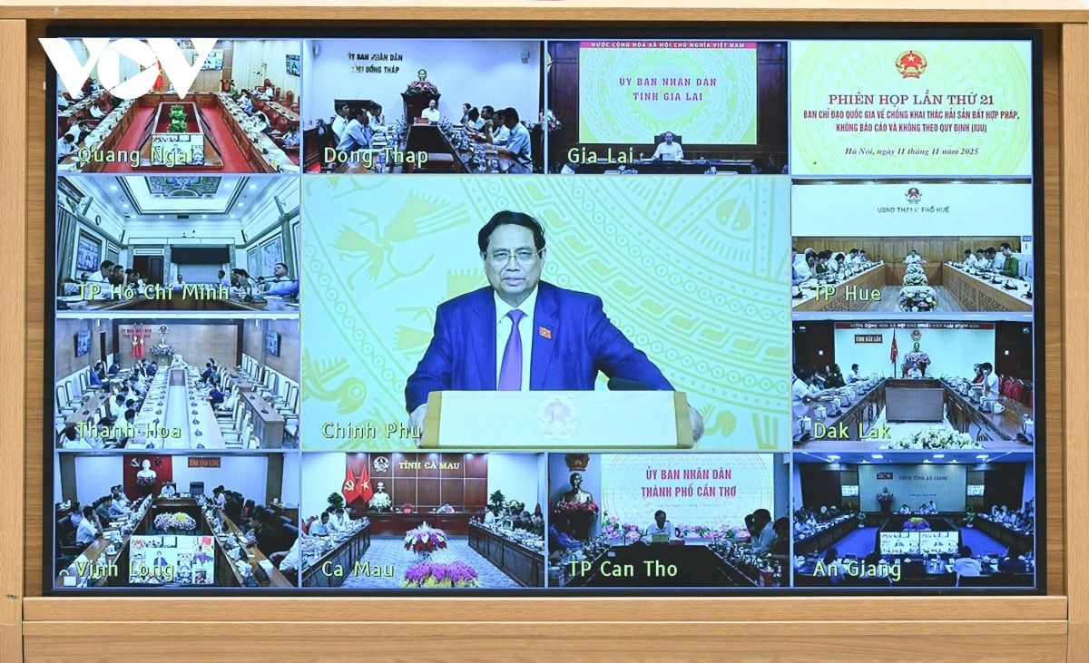 Tối nay (11/11), tại Trụ sở Chính phủ, Thủ tướng Phạm Minh Chính chủ trì Phiên họp lần thứ 21 của Ban Chỉ đạo Quốc gia về chống khai thác hải sản bất hợp pháp, không báo cáo và không theo quy định (IUU). Phiên họp được truyền trực tuyến tới 21 tỉnh, thành phố ven biển.