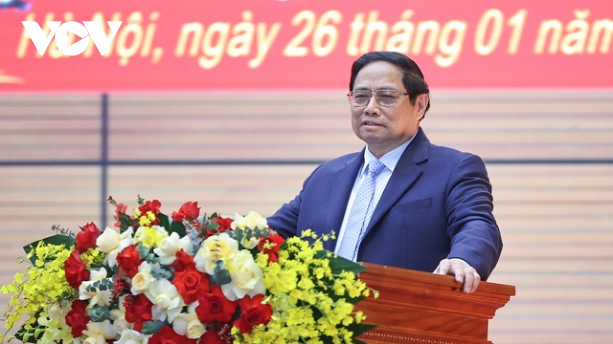 Thủ tướng cho biết, năm 2023 vừa đi qua với nhiều biến động phức tạp. Trong bối cảnh đó, dưới sự lãnh đạo của Đảng Cộng sản Việt Nam, trực tiếp, thường xuyên là Bộ Chính trị, Ban Bí thư, đứng đầu là Tổng Bí thư Nguyễn Phú Trọng; sự vào cuộc quyết liệt và nỗ lực của cả hệ thống chính trị, các cấp, các ngành, các địa phương, cộng đồng doanh nghiệp, nhân dân cả nước và sự hợp tác chặt chẽ, hỗ trợ tích cực của bạn bè quốc tế, kinh tế - xã hội đạt được những kết quả quan trọng trên các lĩnh vực với nhiều dấu ấn nổi bật.