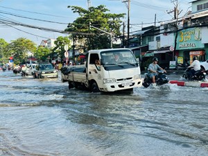 Triều cường ở Cần Thơ vượt báo động, nhiều tuyến đường bị ngập sâu