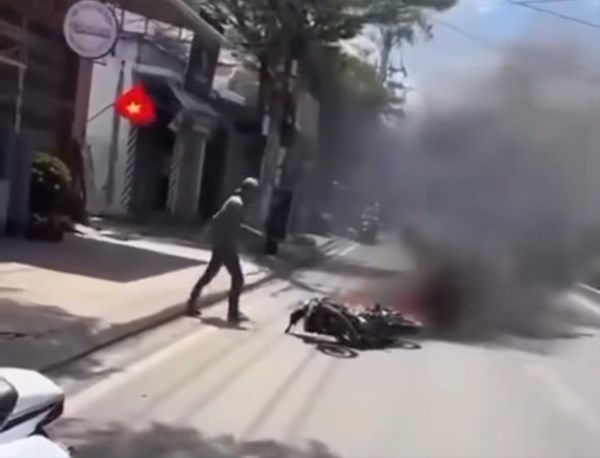 VOVVN - VOV.VN - Bị CSGT yêu cầu dừng xe kiểm tra, một thanh niên không chấp hành rồi châm lửa đốt chính xe máy của mình; kết quả test nhanh người này dương tính với ma...