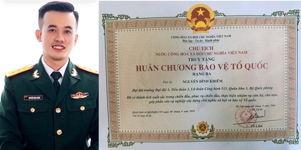 VOVVN - VOV.VN - Ngày 9/9, Chủ tịch nước đã ký quyết định truy tặng Huân chương Bảo vệ Tổ quốc hạng Ba cho Đại úy Nguyễn Đình Khiêm, Đại đội trưởng Đại đội 3, Tiểu đoàn...