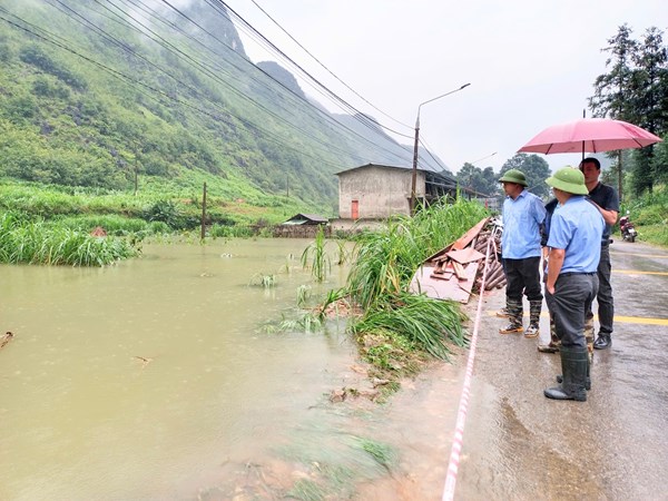 VOVVN - VOV.VN - Do ảnh hưởng của hoàn lưu cơn bão số 3 (YAGI), trên địa bàn huyện Mèo Vạc, tỉnh Hà Giang mưa lớn kéo dài từ đêm 7 đến 9/9, đã làm sạt lở đường giao thông, gây thiệt...
