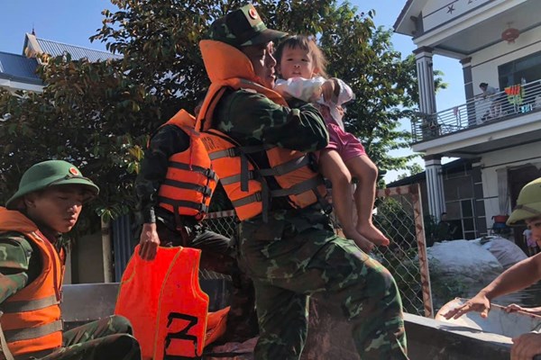 VOVVN - VOV.VN - Giữa dòng nước lũ các chiến sĩ Sư đoàn 312, Quân đoàn 12 không quản ngày đêm len lỏi vào từng ngõ nhỏ, gõ cửa từng nhà để trao tận tay từng suất...