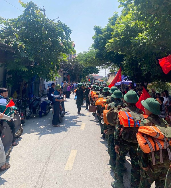 VOVVN - VOV.VN - Sau khi mực nước sông Cầu đoạn xã Hợp Thịnh, Xuân Cẩm, tỉnh Bắc Ninh được kiểm soát, cán bộ, chiến sĩ Trung đoàn 2 (Quân khu 1) đã lên đường trở về...