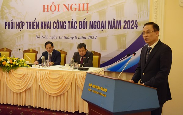 VOVVN - VOV.VN - Ngày 13/8, tại Nhà khách Chính phủ, diễn ra Hội nghị phối hợp triển khai công tác đối ngoại năm 2024 giữa Bộ Ngoại giao, Ban Đối ngoại Trung ương, Ủy ban Đối...