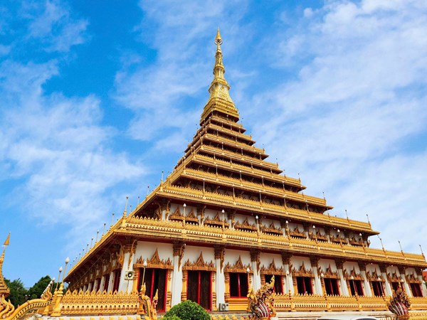 VOVVN - VOV.VN - Bảo tháp 9 tầng Phra Mahathat Kaen Nakhon là công trình độc đáo nằm trong Wat Nong Wang - ngôi chùa lớn và linh thiêng bậc nhất của Khon Kaen, nằm cách thủ...