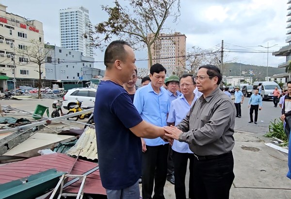 VOVVN - VOV.VN - Chiều 8/9, Thủ tướng Phạm Minh Chính đi kiểm tra tình hình thiệt hại, chỉ đạo triển khai các biện pháp cấp bách khắc phục hậu quả cơn bão số 3 tại Quảng...