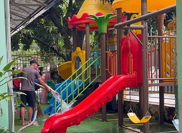 VOVVN - VOV.VN - Hoàn lưu bão số 11 gây mưa lớn khiến 30 trường học tại Hà Nội bị ngập sâu. Không ít trường phải huy động giáo viên dọn dẹp xuyên đêm, tạm ngừng đón...