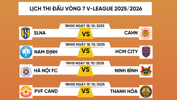 VOVVN - VOV.VN - Lịch thi đấu vòng 7 V-League 2025/2026, trận cầu tâm điểm là màn so tài của Hà Nội FC với Ninh Bình trên sân Hàng Đẫy.
