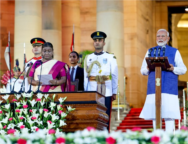 VOV1 - Tối ngày 9/6, tại Phủ Tổng thống ở thủ đô New Delhi, Thủ tướng Ấn Độ Narendra Modi đã tuyên thệ nhậm chức nhiệm kỳ thứ 3 liên tiếp.