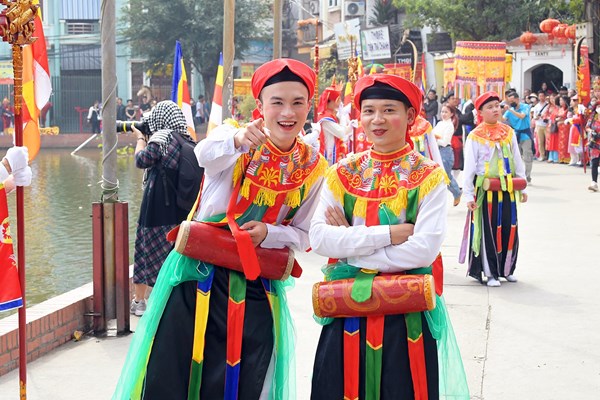 VOVVN - VOV.VN - Điểm nhấn của Lễ hội làng Triều Khúc nằm ở màn múa “con đĩ đánh bồng” của các chàng trai giả gái.