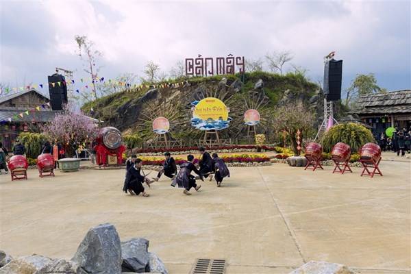 VOVVN - VOV.VN - Nhiều du khách thích thú và phấn khích khi tham gia chơi bịt mắt bắt dê, bịt mắt bắt vịt, leo cột mỡ, đi cà kheo… tại Bản Mây trong khuôn khổ Hội...