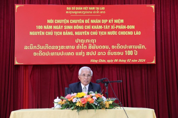 VOVVN - VOV.VN - Chiều 6/2, tại Vientiane, Đại sứ quán Việt Nam tại Lào đã tổ chức buổi nói chuyện chuyên đề nhân kỷ niệm 100 năm ngày sinh đồng chí Khamtai Siphandone, nguyên Chủ tịch...