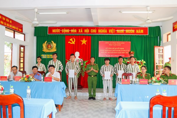 VOVVN - VOV.VN - Công an tỉnh Vĩnh Long vừa tổ chức Lễ công bố Quyết định giảm thời hạn chấp hành án phạt tù đợt Tết Nguyên đán Giáp Thìn 2024 cho các phạm nhân đang...